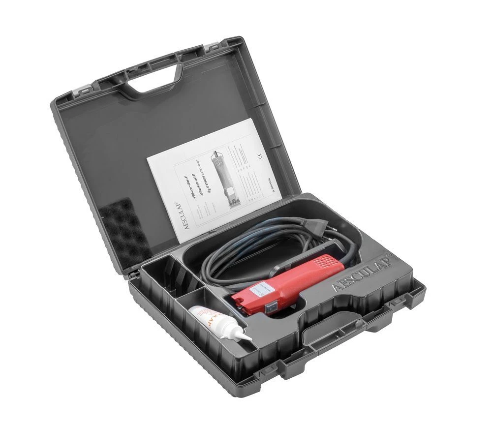 Die äusserst kraftvolle, leistungsfähige und zuverlässige Profi-Schermaschine eignet sich auch für sehr dickes Fell. Das Kabel ist 5 Meter lang. Im Lieferumfang enthalten sind: Maschine Favorita Speed, 1 Aesculap Ölflasche und die Gebrauchsanleitung. Die Maschine wird in einem Hartschalenkoffer geliefert.