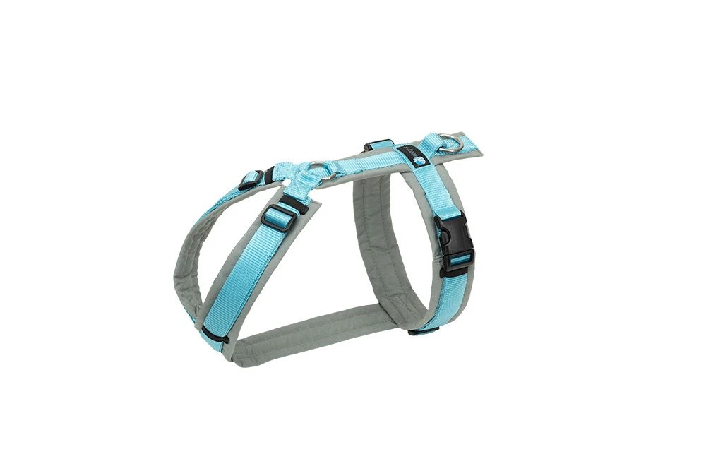 Das gepolsterte Geschirr Fun bietet eine individuelle Verstellmöglichkeit im Hals- und Brustbereich sowie zwei Steckschnallen (ab Grösse M) für ein bequemes Anlegen bei einer Zuglast von bis zu 70 kg. Durch seine ergonomische Form passt sich das Geschirr optimal dem Körperbau Ihres Hundes an und verteilt die Zugkraft gleichmässig und rückenschonend.