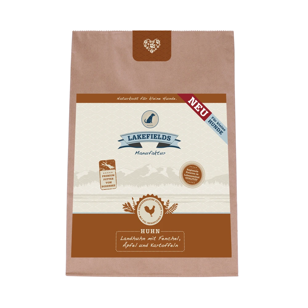 Im Lakefields Hühner-Menü kommt ausschliesslich schmackhaftes Hühnerfleisch (68 %) als wertvolle Proteinquelle zum Einsatz. Dieses fettarme Fleisch ist reich an essenziellen Nährstoffen wie Vitamin B6 und B12, Niacin, Kalium, Magnesium, Eisen sowie Zink. Durch die Zugabe von frischem Obst und Gemüse wie Fenchel, Karotten, Kartoffeln und Äpfeln entsteht eine ausgewogene, bekömmliche Mahlzeit für Ihren treuen Begleiter. Lakefields ist davon überzeugt, dass nicht nur die sorgfältige Auswahl hochwertiger Zutaten von Bedeutung ist, sondern auch eine schonende Zubereitung, die die Nährstoffe erhält. Das Trockenfleisch-Menü wird nach der Zubereitung in einem traditionellen Steinofen gebacken. Auf diese Weise wird dem Produkt behutsam Feuchtigkeit entzogen, sodass auf den Zusatz von Konservierungsstoffen verzichtet werden kann. Ihr Hund verdient nämlich nur das Beste.