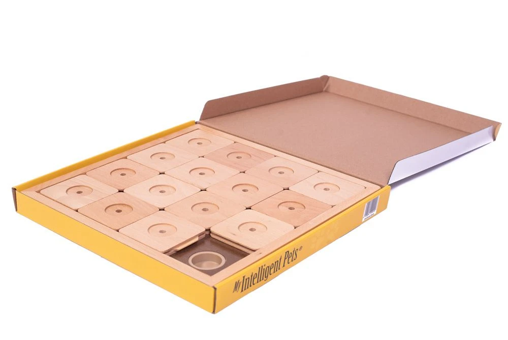 Mit Dog’s SUDOKU® wird aus dem Spielzeug ein spannendes Intelligenzspiel für Ihren besten Freund. Bei diesem unterhaltsamen Spiel muss der Hund die Spielsteine verschieben, um die versteckte Belohnung zu finden. Dabei stehen Ihrem vierbeinigen Freund 16 mögliche Verstecke und 15 verschiebbare Felder zur Verfügung, die ihm viele Möglichkeiten bieten, die versteckten Leckereien zu entdecken. Dog’s SUDOKU® ist aber mehr als nur ein Spiel. Es fördert die natürlichen Instinkte Ihres Hundes und spricht insbesondere seinen ausgeprägten Geruchssinn an. So motivieren Sie Ihren Hund, sich seine Belohnung durch intelligentes und geschicktes Spielen zu verdienen. Bitte achten Sie darauf, dass Ihr Hund nie unbeaufsichtigt spielt. Greifen Sie ein, sobald Sie bemerken, dass Ihr Liebling versucht, das Spielzeug zu zerbeissen.