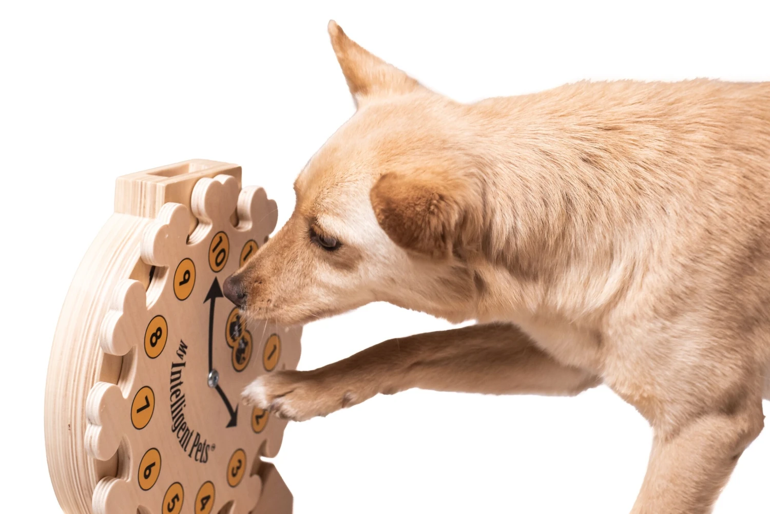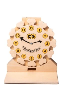 Pet’s Clock ist ein innovatives Puzzle für Haustiere (insbesondere Hunde und Katzen). Es erfordert von Ihrem Haustier die Fähigkeit, die Uhrenplatte in eine Richtung (im Uhrzeigersinn) zu bewegen, um die Leckereien zu erhalten. Die Platte der Uhr wird mit Schrauben, die im Lieferumfang enthalten sind, am Sockel befestigt. Die Bewegung der Uhrscheibe ist immer um 1 Stunde möglich. Interaktive Puzzles unterstützen die ursprünglichen Instinkte des Haustiers: Neugier, Spieltrieb, Nase und geistige Arbeit. Diese Art von Aktivitäten sind für ein Tier als Ausgleich zu körperlichen Übungen erforderlich, um das Wohlbefinden des Tieres zu gewährleisten. Laut Verhaltensforschern 10 Minuten mentale Stimulation mit Einbeziehung von interaktiven Spieläquivalenten bis zu 1 Stunde körperlicher Bewegung.