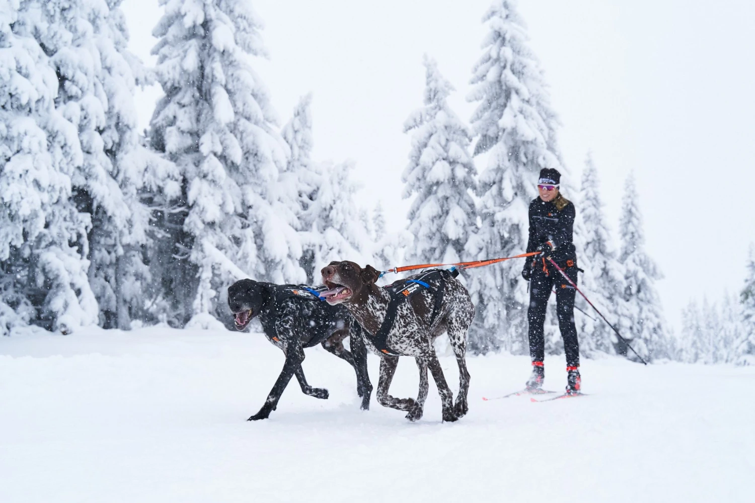 Die Non-Stop Bungee Leash ist eine hochwertige und langlebige Leine für aktive Hundebesitzer*innen, die ihre sportlichen Aktivitäten gerne in Begleitung von einem oder zwei Hunden ausüben. Ob beim Skijöring, Bikejöring, Canicross oder Scooterfahren, diese Leine bietet sowohl dem Hundeführer als auch dem Hund einen hervorragenden Komfort. Durch das elastische Kernmaterial werden abrupte Züge sanft abgefedert, wodurch das Verletzungsrisiko auf beiden Seiten minimiert wird. Der stabile Auaaenmantel sorgt dafür, dass die Leine auch bei Kontakt mit scharfen Kanten und Ecken im Gelände intakt bleibt. Verbesserte Nähte und der Twist-Lock-Karabiner aus Aluminium garantieren nicht nur eine maximale Lebensdauer, sondern auch eine schnelle und einfache Handhabung.
