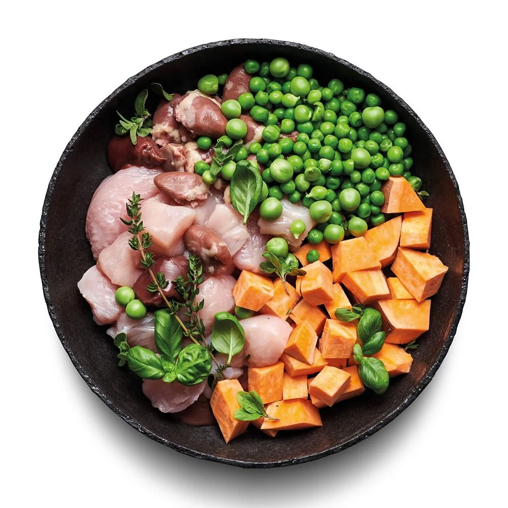 Die Zusammensetzung mit Huhn, Leinsamen, Präbiotika und speziellen Kräutern unterstützen eine harmonische Verdauung der enthaltenen Nährstoffe. Zartes, fettarmes Fleisch vom Huhn versorgt deinen Vierbeiner mit gesundem Eiweiß und spendet so ordentlich Energie für den Tag. Gesunde Süßkartoffel liefert deiner Fellnase sehr gut bekömmliche Kohlenhydrate. Sie ist glutenfrei und glänzt mit einem hohen Gehalt an Kalium. Frische Kräuter runden unser Trockenfutter Mini optimal ab.
