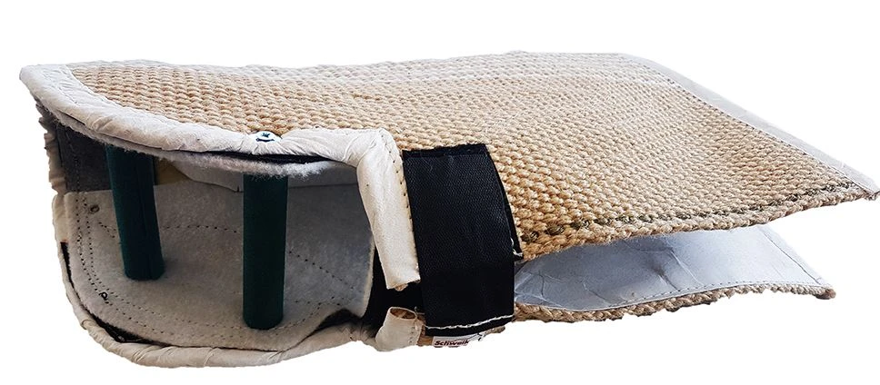 Durch seinen schrägen Keil und das abgerundete Ende kann man diesen sehr weit ausstellen. Mit der speziellen Ausbildungsmethode von Jogi Zank und diesem Ärmel kann nahezu jeder einen schnellen Hund abfangen!