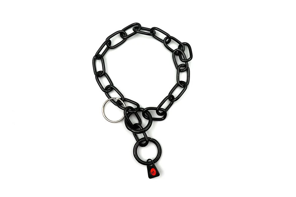 Diese Halskette aus rostfreiem Edelstahl ist dank ihrer hohen Bruchfestigkeit ideal für das Training von Hunden kleiner und grosser Rassen. Geeignet ist sie für Hunde bis 55 kg. Seit der Revision des Tierschutzgesetzes vom 1.1.2014 (Art. 73, Abs. 2) ist die Verwendung von Zughalsbändern ohne Anschlag verboten. Jedem Kettenhalsband liegt deshalb ein Stoppring bei, der je nach Halsumfang des Hundes so angebracht wird, dass ein Ziehen am Halsband oder ein Würgen des Hundes ausgeschlossen ist.