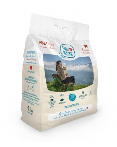 Swiss Natural Soft ADULT mini ist eine hochwertige getreidefreie Vollnahrung mit 70% Rindfleisch aus der Schweiz. Durch unser schonendes Herstellungsverfahren SOFT bleibt in den Futterbrocken bis zu 30% Restfeuchte enthalten. Mit dem Monoprotein und ImmunoCell3aktive steht dieses Futter für eine optimale Verträglichkeit.