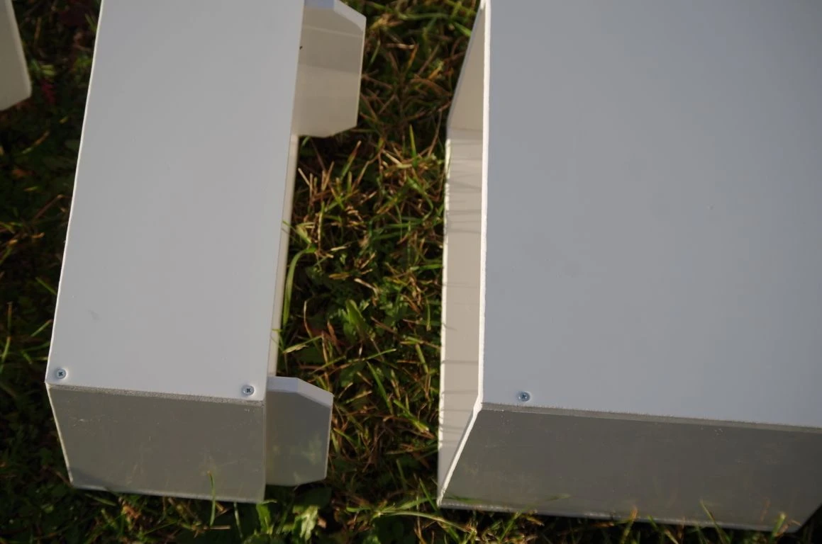 Konstruktion aus 10 mm Integralschaum, Mauerdicke 20cm. Mittelteil kann auf Midi und Mini Höhe niedriger eingestellt werden. Abwerfbare halbrunde Elemente am oberen Abschluss.
