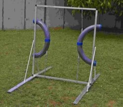 Der sichere Reifen der bei Belastung auseinander klappt. Kann schnell und problemlos wieder aneinander gefügt werden. Bequem höhenverstellbar, 3 Turnierhöhen sowie weitere Trainingsmöglichkeiten. Leichtes Rahmengestell aus Aluminium mit Standfüssen 100 cm pro Seite gemäss FCI Norm.