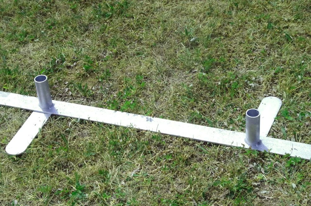 Stabile Konstruktion mit Basis aus verzinktem Flachstahl. 6 Grundelemente zum zusammenstecken. Die massiven Stangen aus Kunststoff sind einfach in die Führungshülsen zu stecken. Stangenabstand 60 cm.